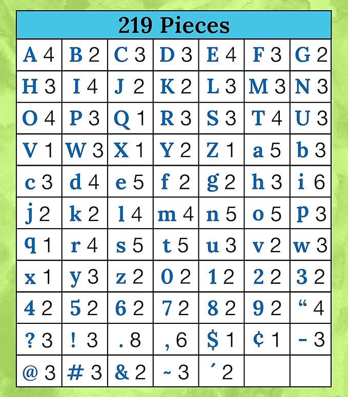- What’s Included: This 219-piece rainbow décor set includes 70 pre-punched uppercase and 87 lowercase alphabet letters, 20 numbers, 22 symbols, and 20 punctuation bulletin board decorations in a variety of colors.