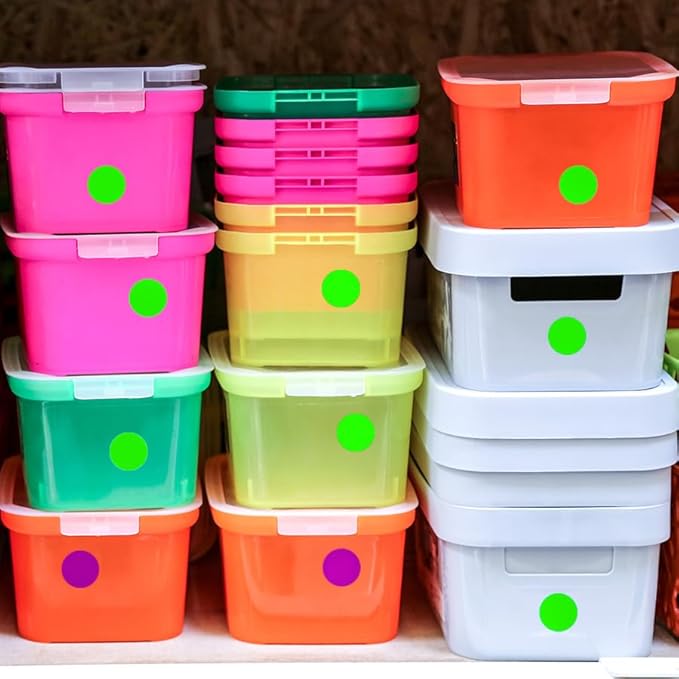 - Fluorescent Matte Finish Green Color Labels; The Fluorescent Matte Finish dot labels not only add vibrancy to your projects but also offer a smooth surface that's easy to write on.