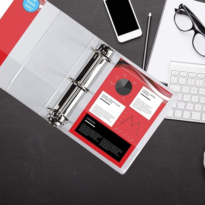 • Durable Non-Stick Customizable Clear View Cover: Features a clear, customizable overlay that resists ink transfer, making it ideal for personalized labels, branding, or presentations. Thanks to the binder’s transparent plastic overlay, its covers and spine can be effortlessly customized. This binder has a water-resistant cover to secure your files and papers and keep them well-organized.