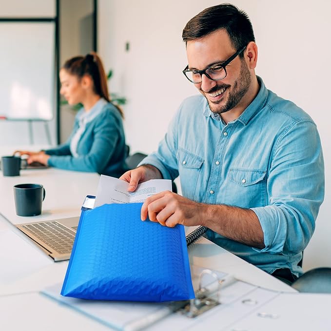 - Opaque Poly Bubble Mailers: The blue bubble mailers outer size is 8.5x12 inch, while the inner size is 8.5x11 inch. With full air bubbles, our bubble mailers can protect your value products from damage caused by external impacts. The inner lining is using gray film, even if there is strong light, the items in the bag cannot be seen, which can protect your privacy well