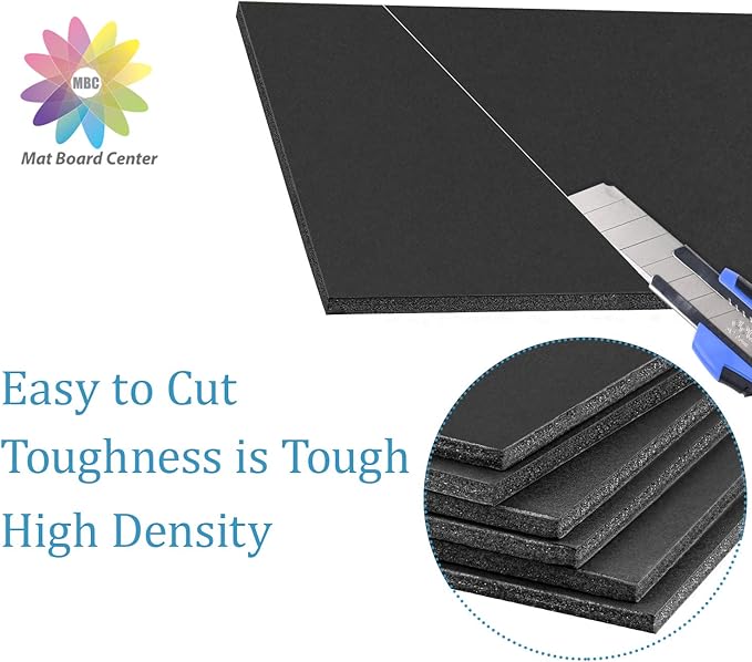 Mat Board Center, Pack of 10 Acid-Free Foam Boards, 11x14 inch Black Foam Boards, 3/16" Thick