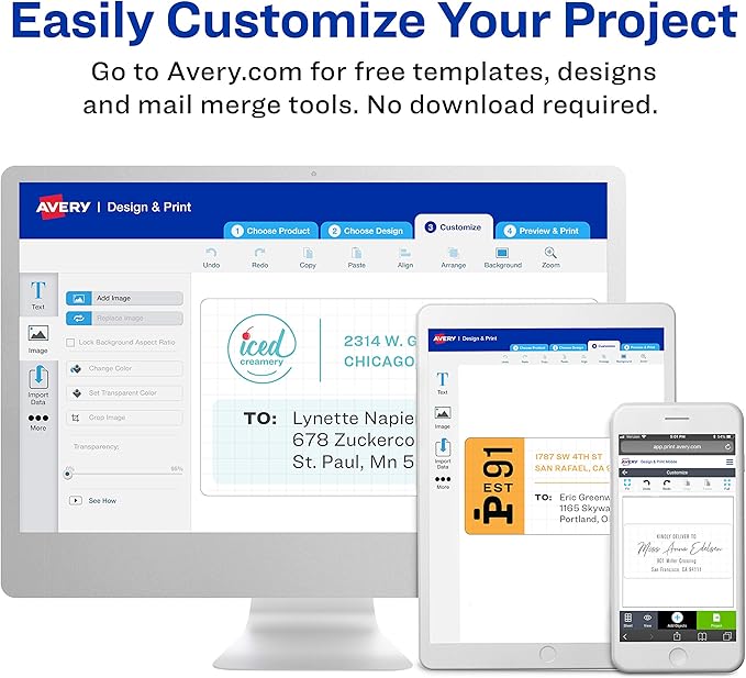 - Customize mail labels by hand, with your own text and graphics, or use the free templates, designs and easy mail merge feature on the Avery website