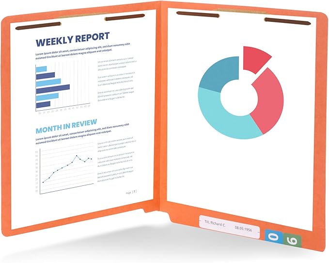 - Our file folders are made of thick 11 PT Orange paper stock that is designed for use with any office color-coded file system