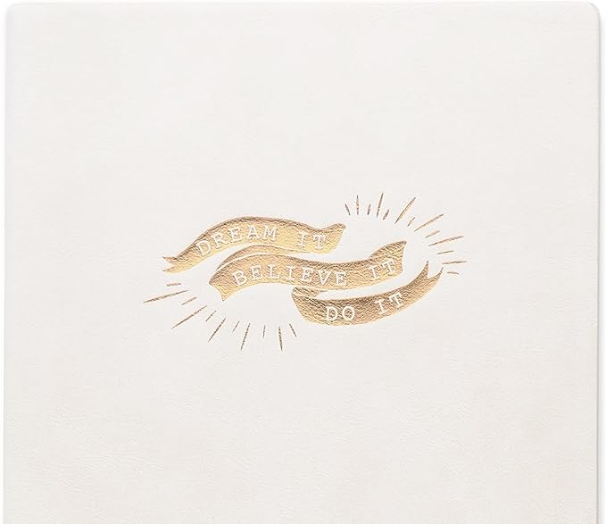 DesignWorks Ink Soft Cover Vegan Leather 17-Month Large Agenda Book, Ivory- Dream It. Believe It. Do It.