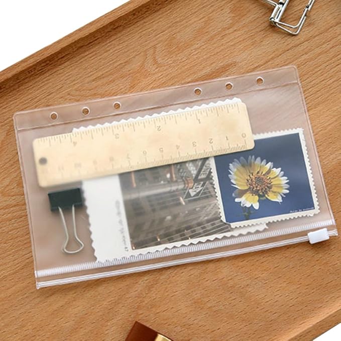 EvZ Zip Closure Envelope for 7 Inches Journal Organizer Diary A6 Notepad Notebook 6 Holes Ring Binder, Flexible Transparent, Set of 3Pcs