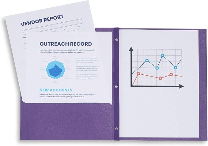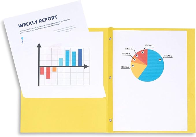 - Durable folders that are designed to hold up to 100 sheets of standard size paper