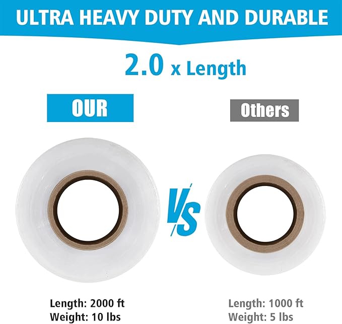 - ULRRA SIZE AND HEAVY DUTY: BONISON strech film has an ultra-long size of 2000ft. Width: 18 inches. Thickness: 80 gauge (20 microns). Inner diameter: 3.34". outer diameter: 6.0". Weigh: 10 lbs