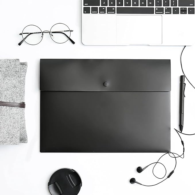 - [Sturdy Construction] Poly folder is made of high strength polyester and polypropylene (PP) material which is environmental friendly, tear proof, water resistant, nontoxic, and non-radioactive. Snap button closure keeps documents secure. Reinforced sealed on three sides to keep papers and documents from slipping out. Also for long-lasting strength.