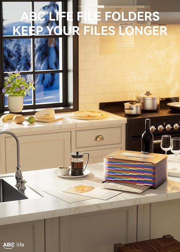 - 【26 Expanding File Folder】ABC life pockets accordian file organizer suitable for filing tax and storing important family documents. Product size is 13 "x 9.4"x 28", top and bottom are both expandable, For letter/A4 size files.