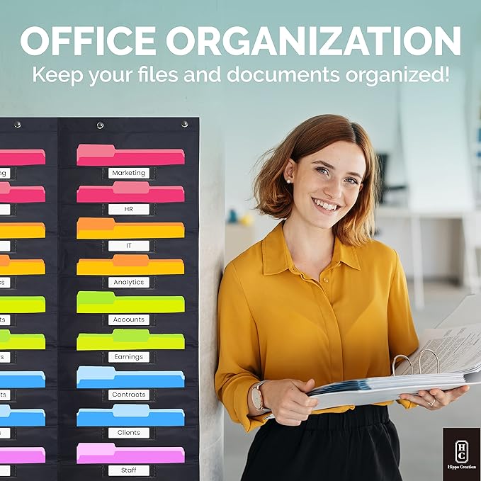- Wall File Organizer: Our hanging file organizer has been thoughtfully designed for quick & easy access. Unlike other pocket charts, ours is made of thick, sturdy material (not flimsy) that stays flat against a wall or door.