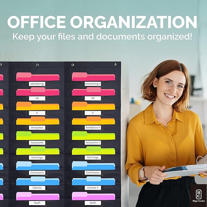 - Wall File Organizer: Our hanging file organizer has been thoughtfully designed for quick & easy access. Unlike other pocket charts, ours is made of thick, sturdy material (not flimsy) that stays flat against a wall or door.
