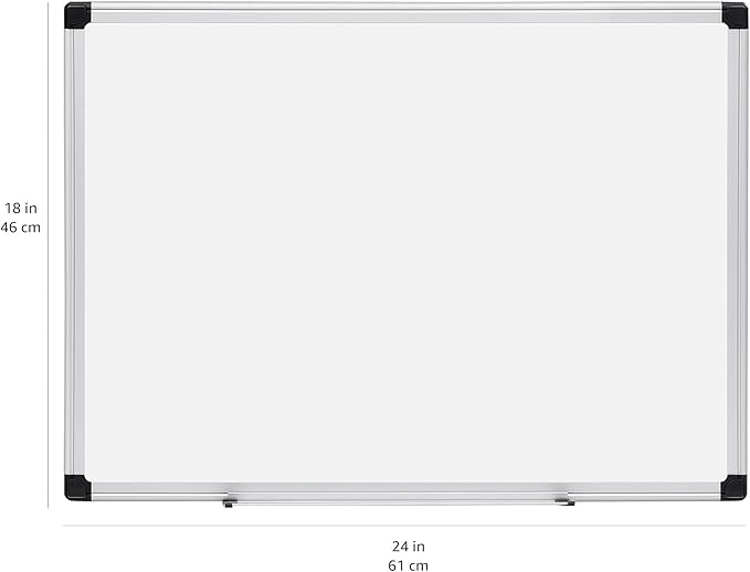 Amazon Basics Magnetic Dry Erase Whiteboard, 24"W x 18"H, Aluminium Frame, Silver/White