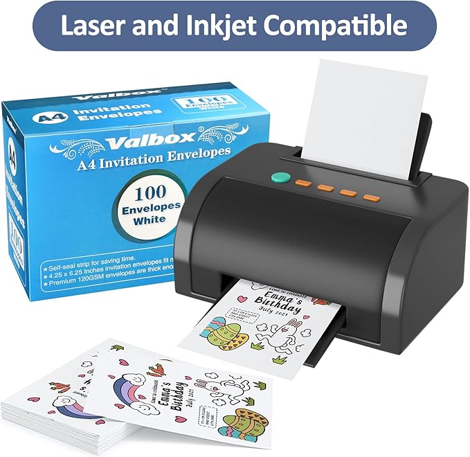 - 【Printer Friendly】Print with your Laser and Inkjet Printers on our A4 greeting card envelopes. Perfect size and weight, never worry about smudging or having the envelopes engulfed by your printer.