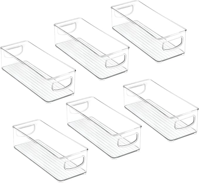 mDesign Small Plastic Office Storage Container Bins with Handles for Organization in Filing Cabinet, Closet Shelf, or Desk Drawers, Organizer for Notes, Pens, Pencils, Ligne Collection, 6 Pack - Clear