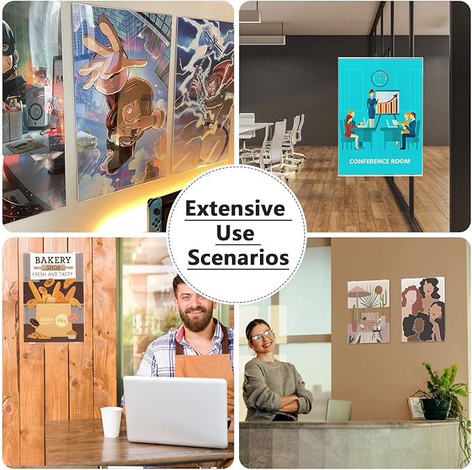- Multiuse Frames: Perfect for marketing, displaying menus, important announcements, photos, brochures and advertising pamphlets. It can be used in restaurants, trade shows, exhibition, hospitals and any other location where you want to display your signs, certificates or advertisements.