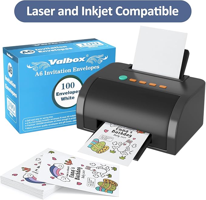- 【Printer Friendly】Print with your Laser and Inkjet Printers on our A6 greeting card envelopes. Perfect size and weight, never worry about smudging or having the envelopes engulfed by your printer.