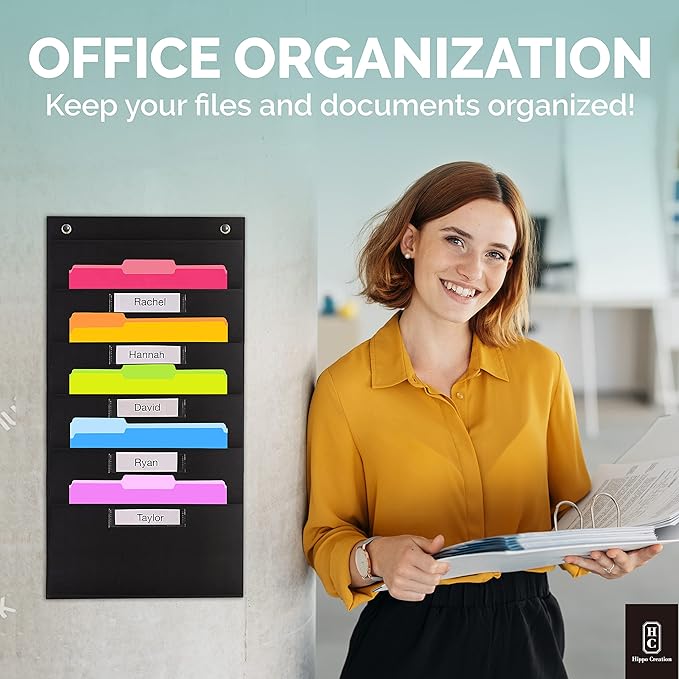 - Wall File Organizer: Our hanging file organizer has been thoughtfully designed for quick & easy access. Unlike other pocket charts, ours is made of thick, sturdy material (not flimsy) that stays flat against a wall or door.