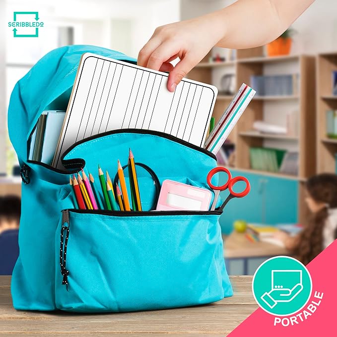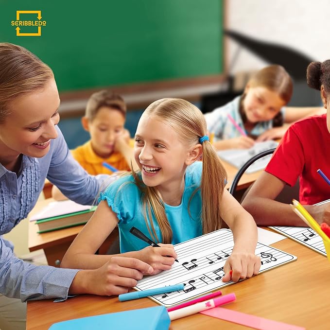 Scribbledo 10 Pack Dry Erase Music Staff Lap White Boards 9"X12" l Write Musical Notes and More Whiteboard (Double Sided) Music Classroom Supplies Must Haves Includes 10 Erasers