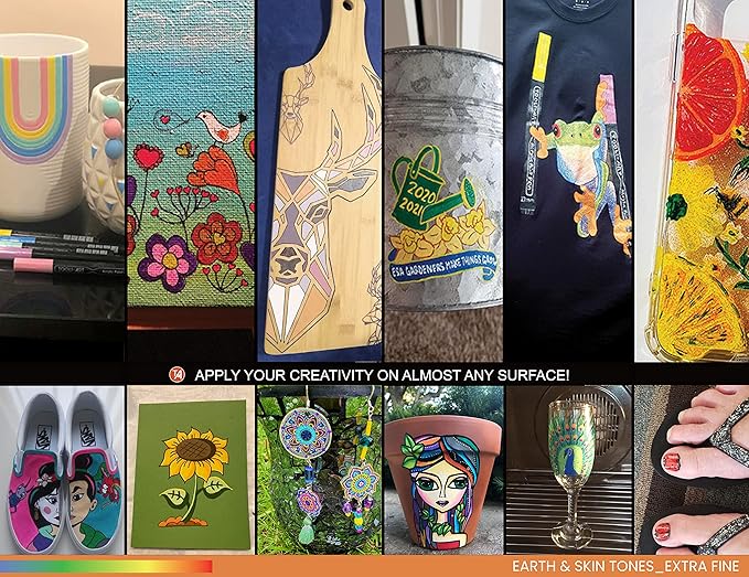 - ✔️BEAUTIFUL NATURAL COLORS! – You get 36 paint pen acrylic markers consisting of an array of beautiful SKIN and EARTH colors in extra fine tip. This set was specifically designed for painting faces, people, animals, nature, etc. These colors are a must have for artists and hobbyists alike and will surely inspire you to make your best art! This set gives you a variety of flesh tones, warm to cool earth colors, browns and beiges, and shades of gray that you don’t find in typical paint pen sets.