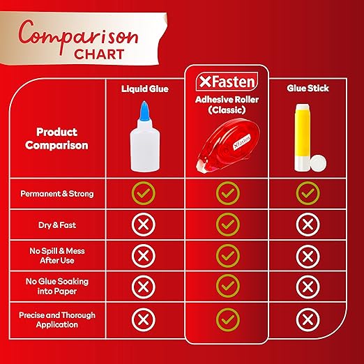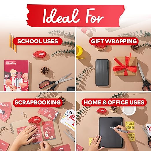 - CLEAN AND MESS-FREE APPLICATION. Unlike liquid adhesives, these double sided tape rollers do not create a mess or leave a residue. They are clean and easy to use, making them ideal for use in various environments, including schools, offices, and homes.