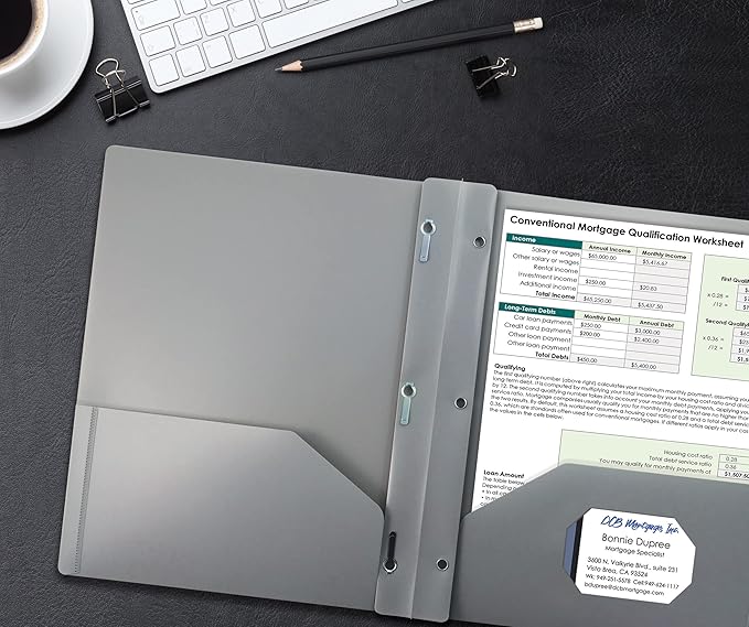 - 24-Pack of Gray 0.35mm Heavyweight polypropylene folders with 3 metal prongs to fit 8.5" x 11" paper/documents