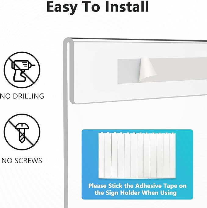 - Simple Installation: The acrylic sign holder 4x6 have adopted double-sided tape for easy mounting. No screws, no drilling, and no tools required. Applicable to virtually any flat surface such as drywall, metal, plastic, wood, glass, etc.