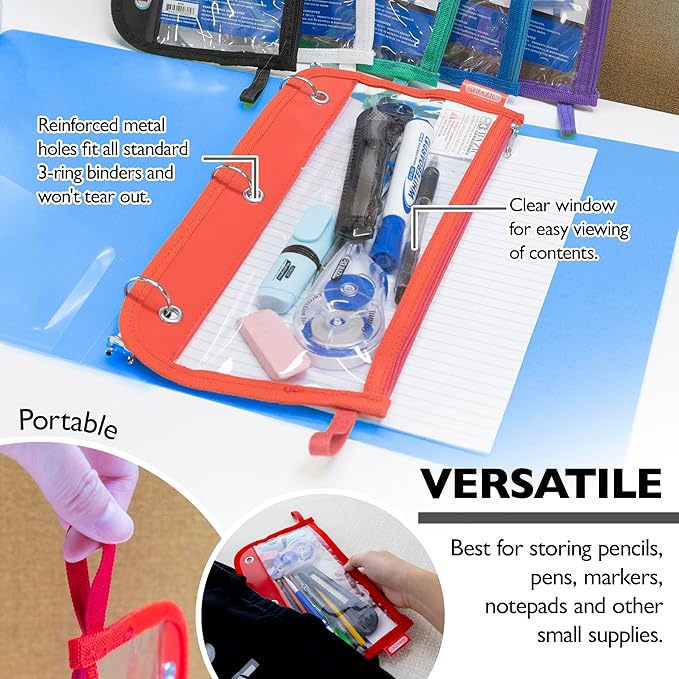 - ⭐ PORTABLE. Size Measure: 11.5" x 6". Features 3 metal rings hole on the bags so they can be attached to binders. Made of durable polyester plastic. Safe & Non-toxic. Carry in backpack, purse, and briefcase.