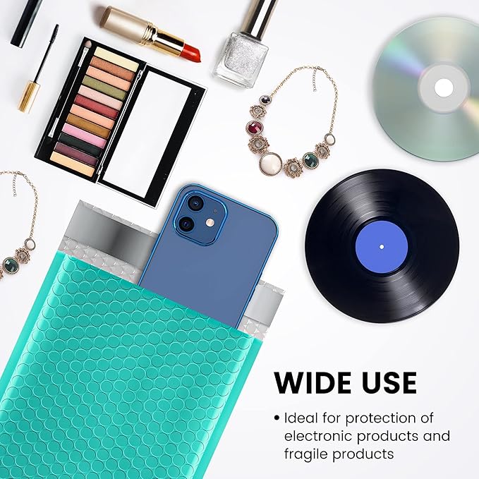 - 【Perfect Size Package Bags】The Teal bubble envelopes outer size is 6x10 inch, while the inner size is 6x9 inch. Perfect for Jewelry, cards, CDs, Phone Cases, lips, smaller books and more and more.