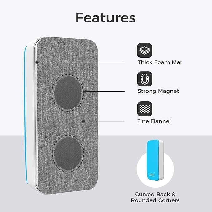 LOUKIN Magnetic Dry Erase Eraser, Whiteboard Eraser, Glass Board Eraser(Blue), One Bottle of 3.4 fl oz Whiteboard Cleaner Included, for Classroom, Home and Office Use