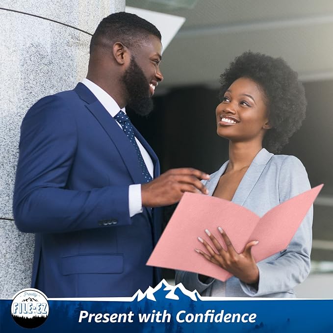 FILE-EZ Two-Pocket Folders, Pink Color, 125-Pack, Durable Textured Paper with Matte Finish, Letter Sheet Size (EZ-32490)