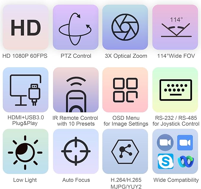 - ✔Multi-compatibility and various Use occasions - Works with most video conferencing and live streaming software such as Zoom, Skype, OBS, Facebook Live, WebEx, polycom, Microsoft Lync and BlueJeans, etc. Supports Windows 7, Windows 8.1, Windows 10, Windows 11, Mac OS 10.10 and higher. Ideal for Video Conferencing, Church Livestream, Remote Meetings, Distance Education, Remote Consultation, etc.