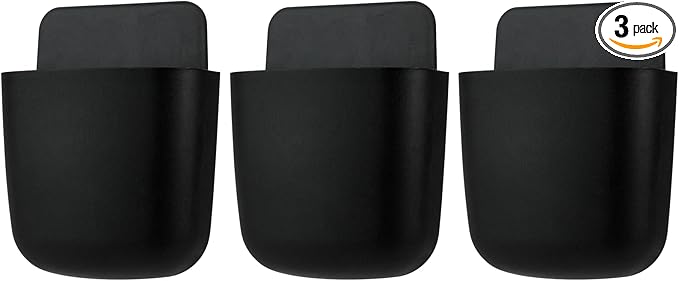3 Pcs Remote Control Holder, Wall Mount Pen Holder Hole-Free Self Adhesive Phone Charging Organizer Pencil Storage Containers for Home Office School Supply Orgaizer (Black