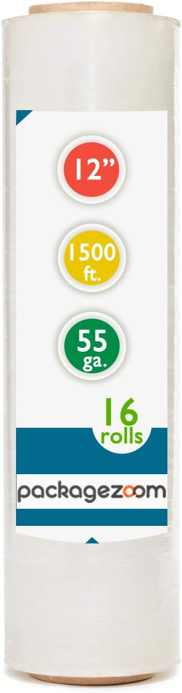 PackageZoom 16 Rolls 12" Stretch Wrap x 1500 Feet Stretch Wrap 55 Gauge Stretch Wrap Moving Supplies Stretch Wrap