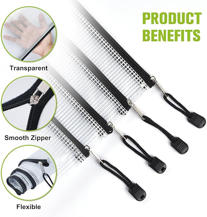 - 【Fine Manufacturing Process】The joint of zipper mesh bag is stable and not easy to tear or damage. The string on the zipper can be used for hanging. It is convenient and fast to use, and easy to carry. Use the zipper pouch to store items and simply take it away with a slight lift.