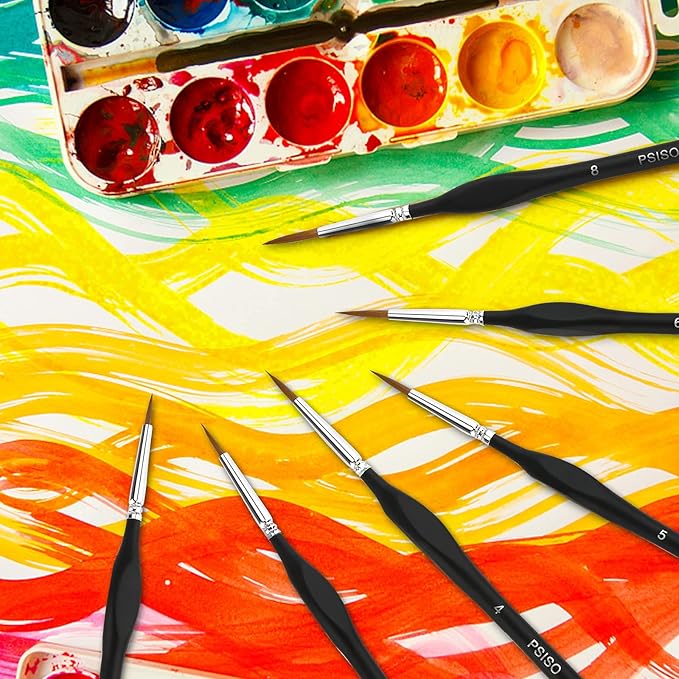 - Perfect Miniature Paint Brushes Kit: The detail paint brush has 10 assorted point tips with different thickness, ensure that you always have just the right paint brush for the job. This set of detailing brushes offers the perfect small paint brush for each phase of all your artistic painting projects, including 000/00/0/1/2/3/4/5/6/8.