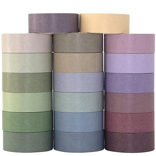 20 Rolls Washi Tape Set, Colored Masking Tape, Decorative Nature Colored Tapes for Arts, DIY Crafts, Bullet Journals, Scrapbooking - 15mm Wide