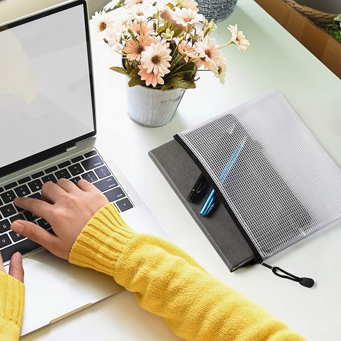 - 【Product Size】Size of the high quality mesh document bags with Zipper is 9.4" x 7.1"/24cm x 18cm(The zipper bag will be larger than the size of A5, manual measurement, there may be an error of 1-2cm). . Which can be used to store some office supplies, like stationery, receipts, invoices etc., also can be used for home daily storage, like the jewelry, make up brush and so on.