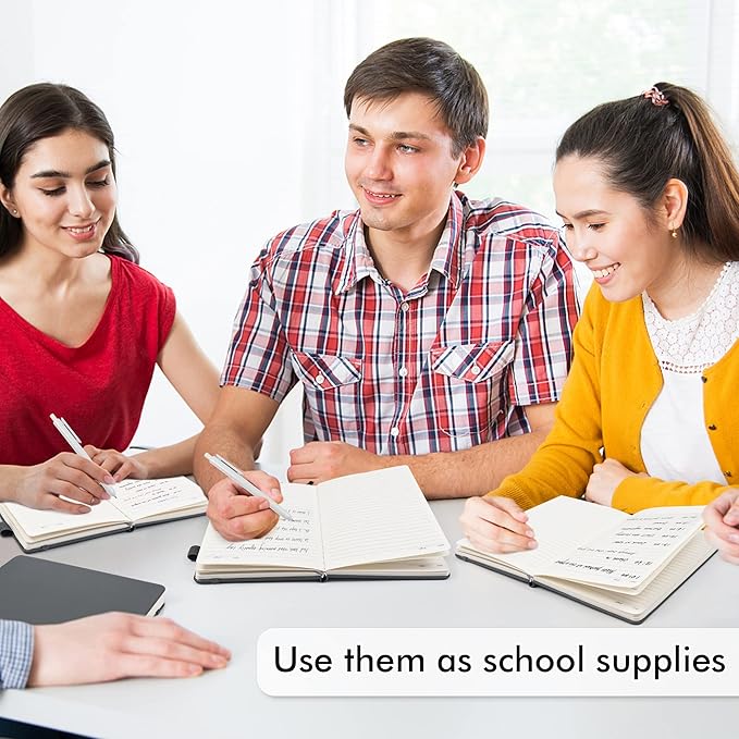 - Feela 12 Pack Classic Ruled Notebooks contains 12 classic gray ruled sturdy cover notebooks and 12 Black Retractable Pens. Each of the notebooks measures 8.3” x 5.1”, which is perfect to carry and easily held by young girls and boys. These black cute pens are customized to be placed in the pen holder, which is pretty convenient.