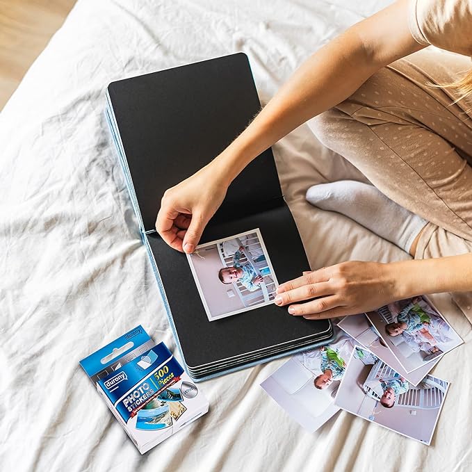 Durony 500 Pieces Photo Sticker White Double-Sided Self Adhesive Photo Tapes for Pictures DIY Photo Album Journal
