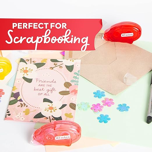 Double Sided Tape for Scrapbooking, 8mm x 30ft 8-Pack Multicolor Adhesive Tape Roller Runner, Jam-Free Craft Tape Ideal Scrapbook Album Kit-XFasten