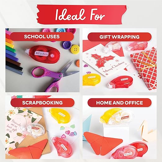 - CLEAN AND MESS-FREE APPLICATION. Unlike liquid adhesives, these double sided tape rollers do not create a mess or leave a residue. They are clean and easy to use, making them ideal for use in various environments, including schools, offices, and homes.