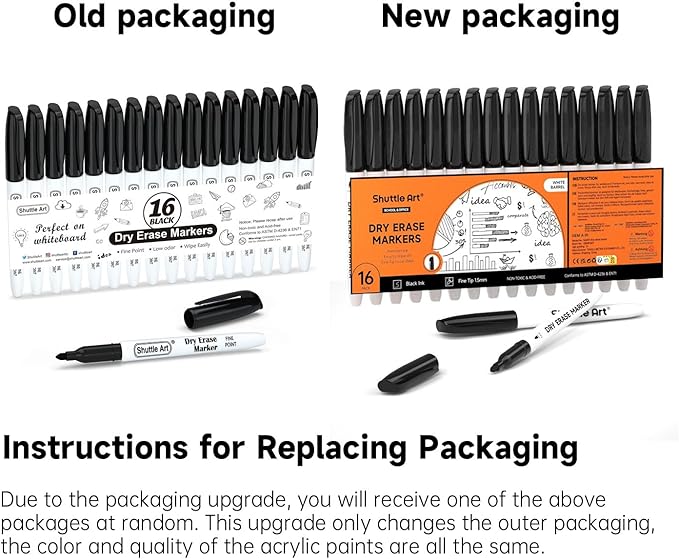 Shuttle Art Dry Erase Markers, 16 Pack Black Whiteboard Markers,Fine Tip Dry Erase Markers for Kids,Perfect for Writing on Whiteboards, Dry-Erase Boards,Mirrors,Calender,School Office Supplies