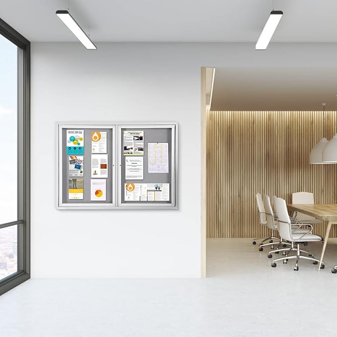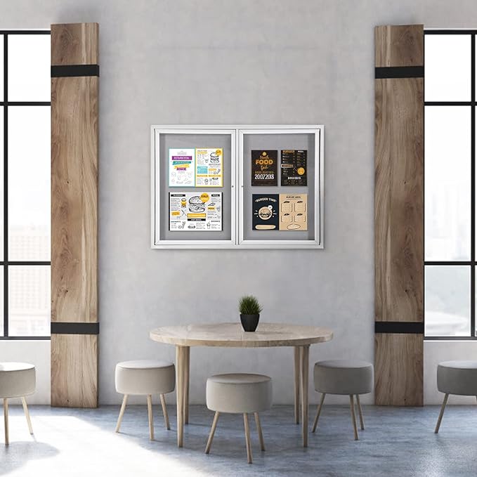 - 💧OUTDOOR USE —The weather-resistant cabinet construction features an aluminum frame with a smooth surface and full-length piano hinges that add strength and durability to the door frame. Drain holes on the bottom and a sealed backing mean you can mount the board outdoors.