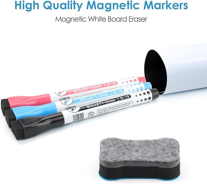 - Super Valuable Sets: Package include: 3*magnetic markers, 1*magnetic eraser and 1*12''x 8'' whiteboard. Everything is magnetic, so they'll always be right next to the dry erase board, make more fun for your family to paint or write notes etc. Ideal complete set for home, office, or classroom.