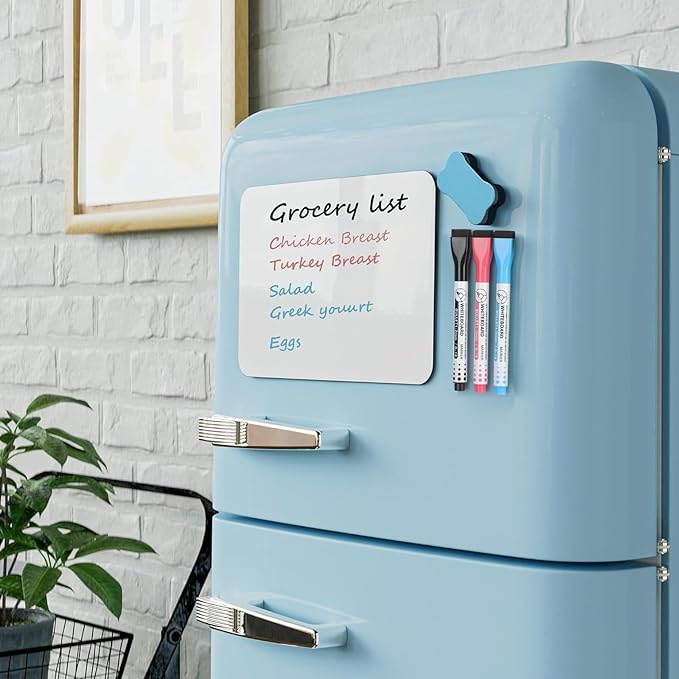 MaxGear Small Magnetic Dry Erase Board Sheet for Refrigerator, Fridge Whiteboard for Kitchen, 12" x 8" White Board Organizer and Planner with Stain Resistant Technology, Include 1 Eraser, 3 Markers