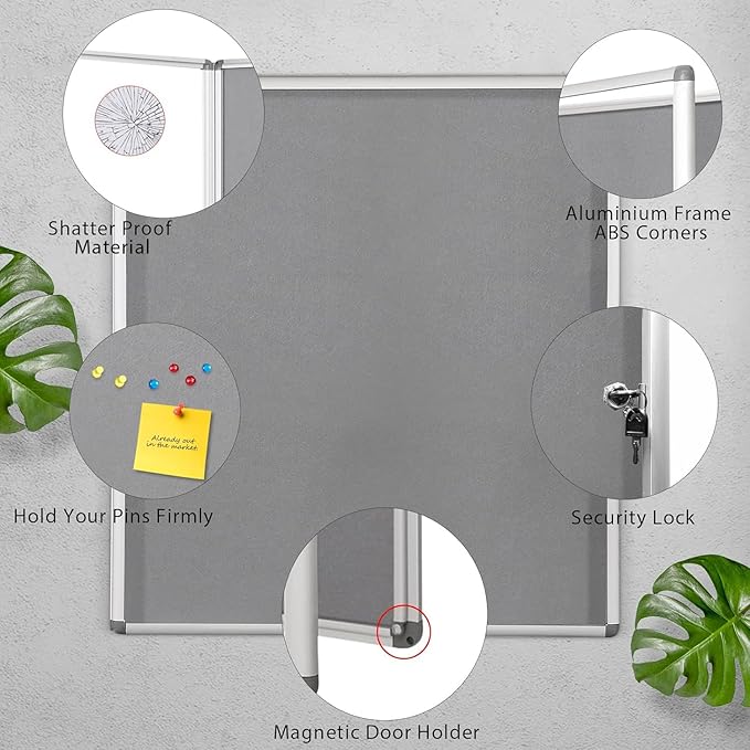 SWANCROWN Lockable Felt Bulletin Indoor Display Case Big Message Center Board with Aluminium Frame,38x38 inches (12xA4)