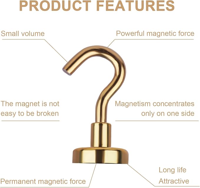 - 【Super Durablel】The heavy duty magnetic hook is coated with three layers: Ni-Cu-Ni, so the magnetic hook is shiny and anti-rust, provides protection for the magnet and helps the hook to chip or crack. Magnetism is always strong