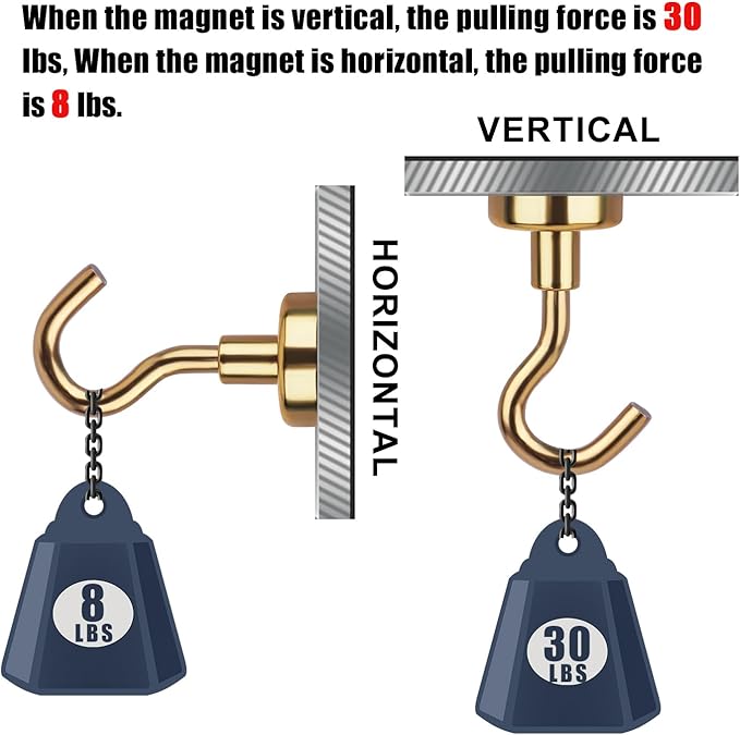 - NOTE】30lbs magnetic hooks tension is based on the direction of tension perpendicular to the contact surface - if used horizontally, reduce by 2/3