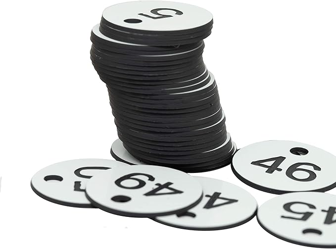 StayMax Plastic ID Number Tags Engraved Tags Key Tags Without Key Rings (1-100, White)