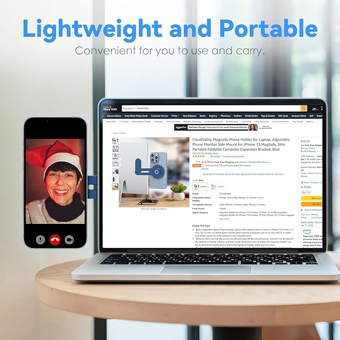 CloudValley Magnetic Phone Holder for Laptop Designed for iPhone 16/15/14/13/12 MagSafe, Adjustable Phone Monitor Side Mount, Slim Portable Foldable Computer Expansion Bracket, Navy Blue…